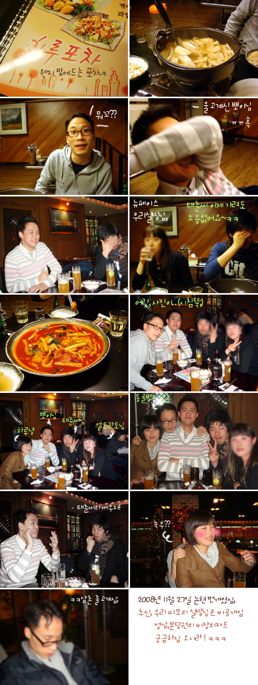 하루냥의 분위기가 머리스타일 변화로 인해 달라 보임... 뭔가 한층 성숙(?)된 모습이랄까?? 아무튼 모임 활성화가 되는거에 축하드리며 나중에 대전과 쪼인 모임도 추진좀 ㅋㅋ 뉴페이스에 목말라 있뜸 ㅋ